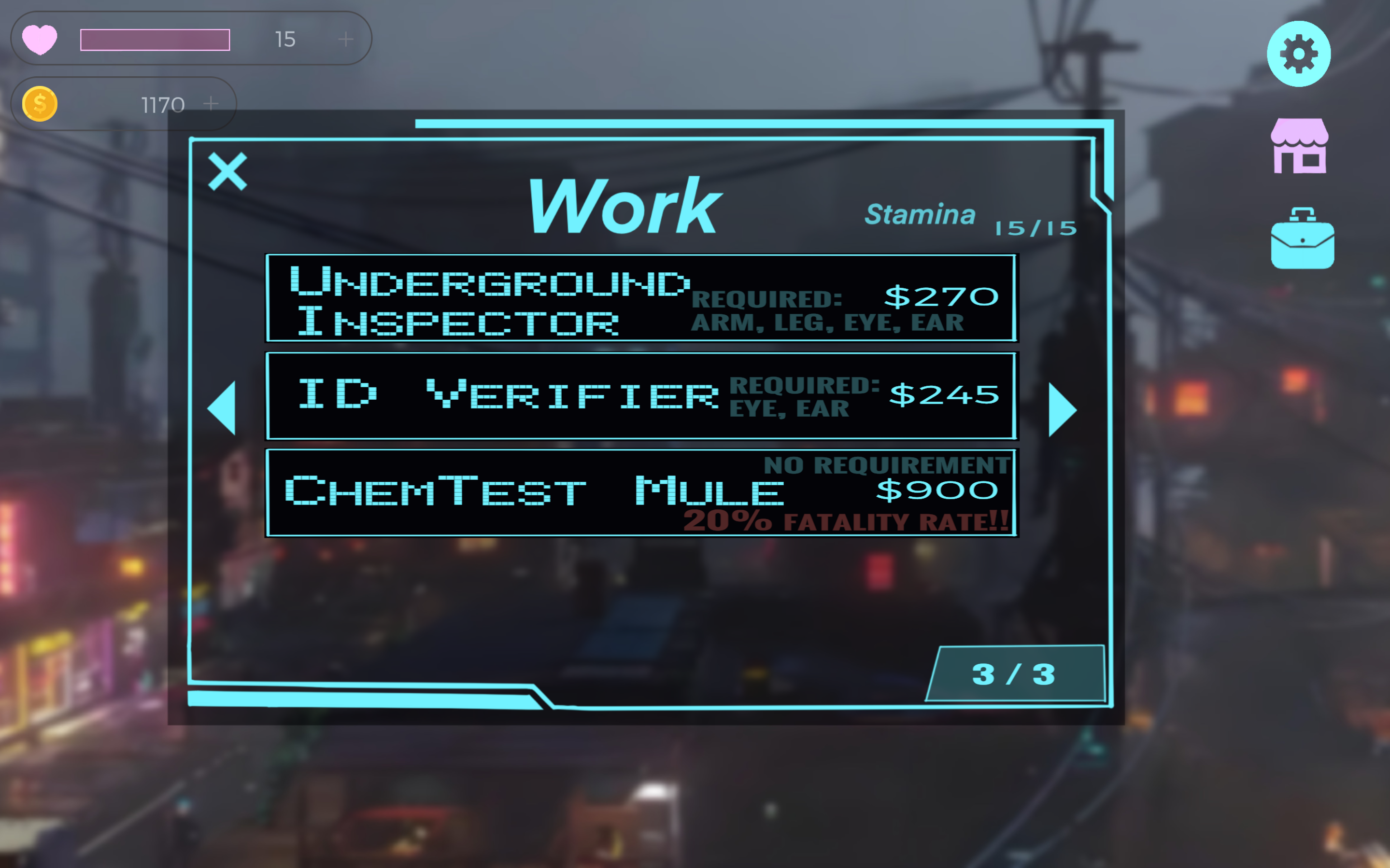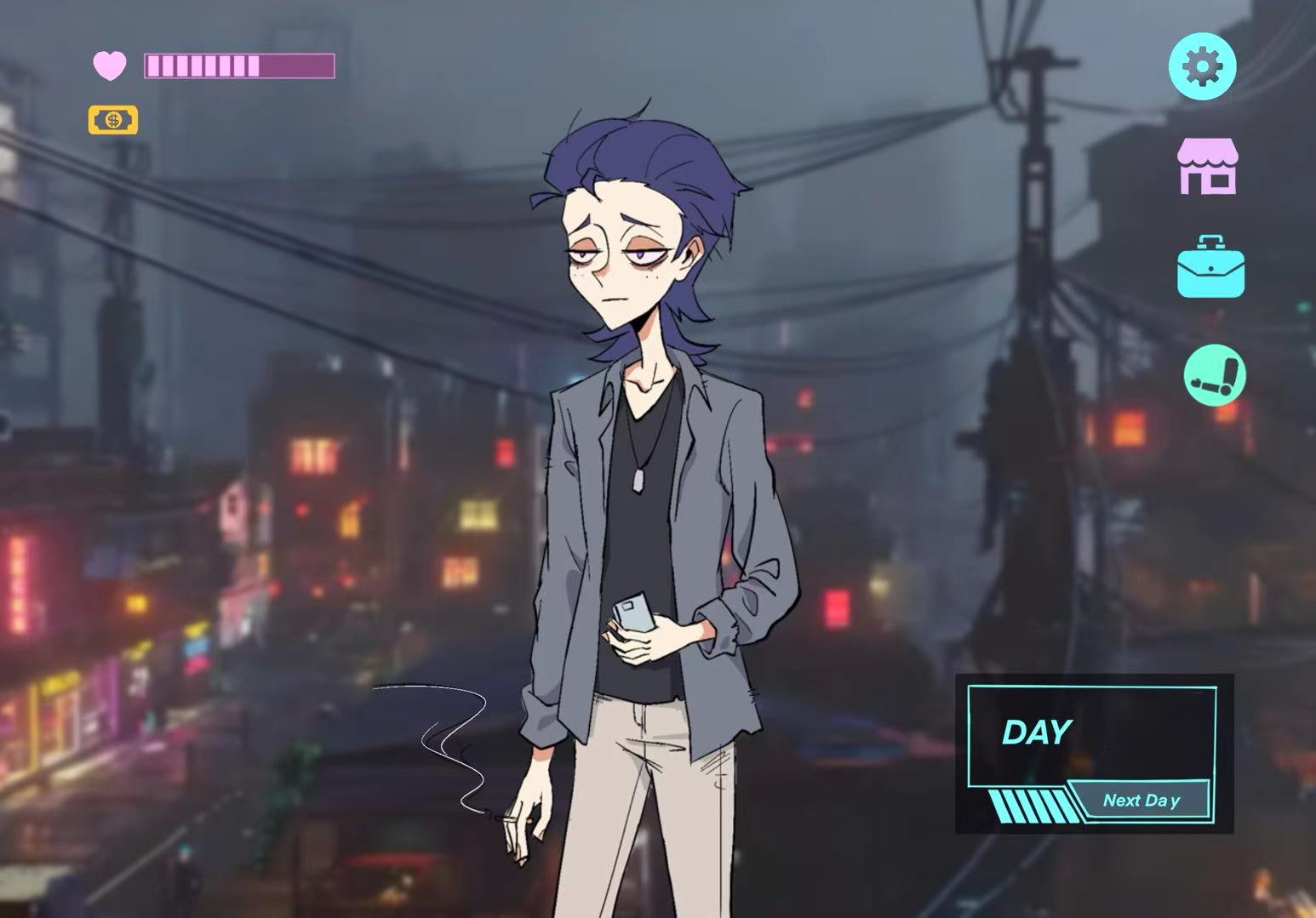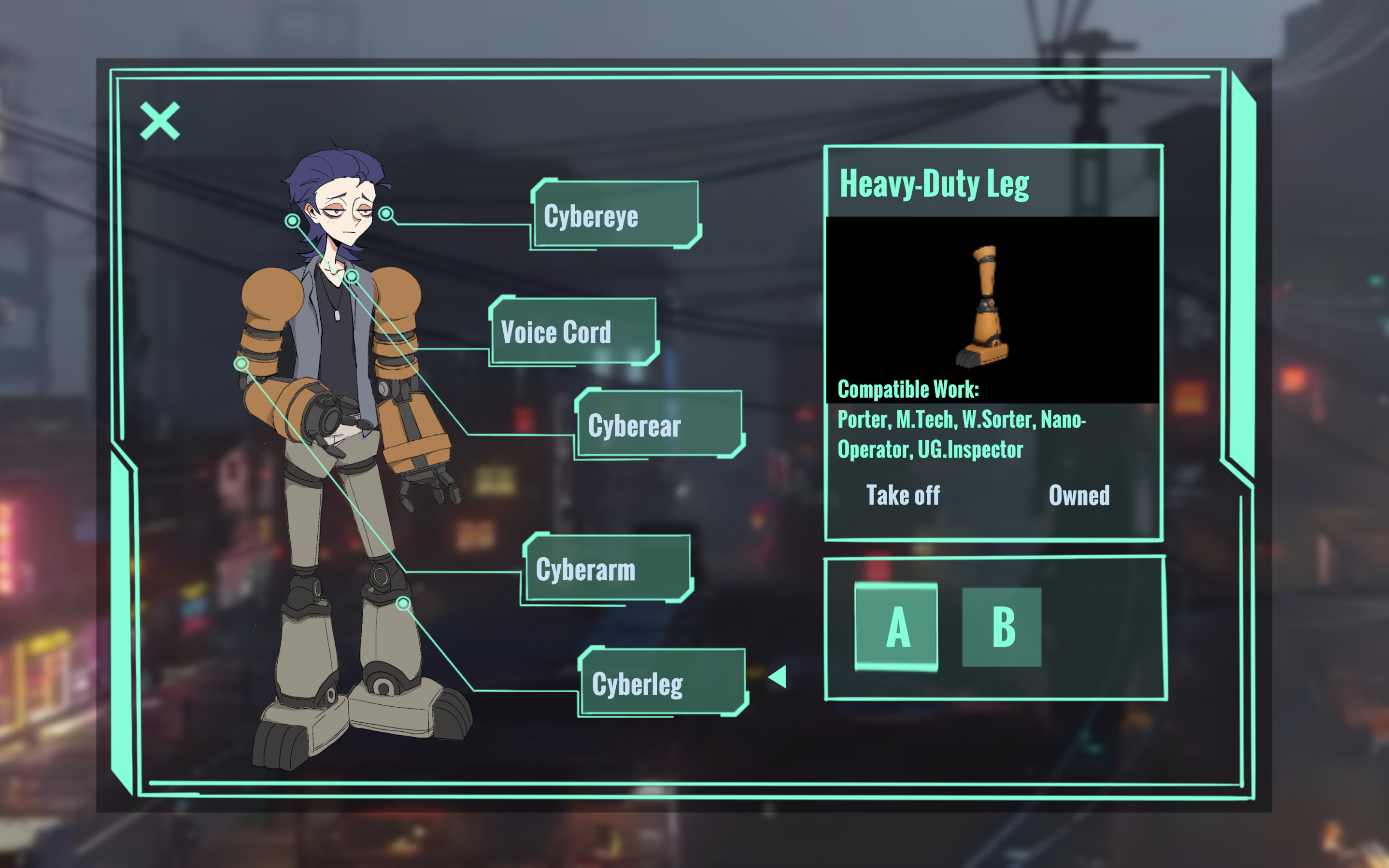 In a city where flesh and metal blur, you are just another bottom-tier worker trying to survive day by day.
